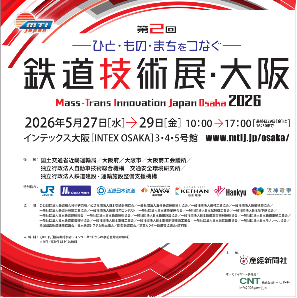 第2回 鉄道技術展・大阪 2026 出展します。